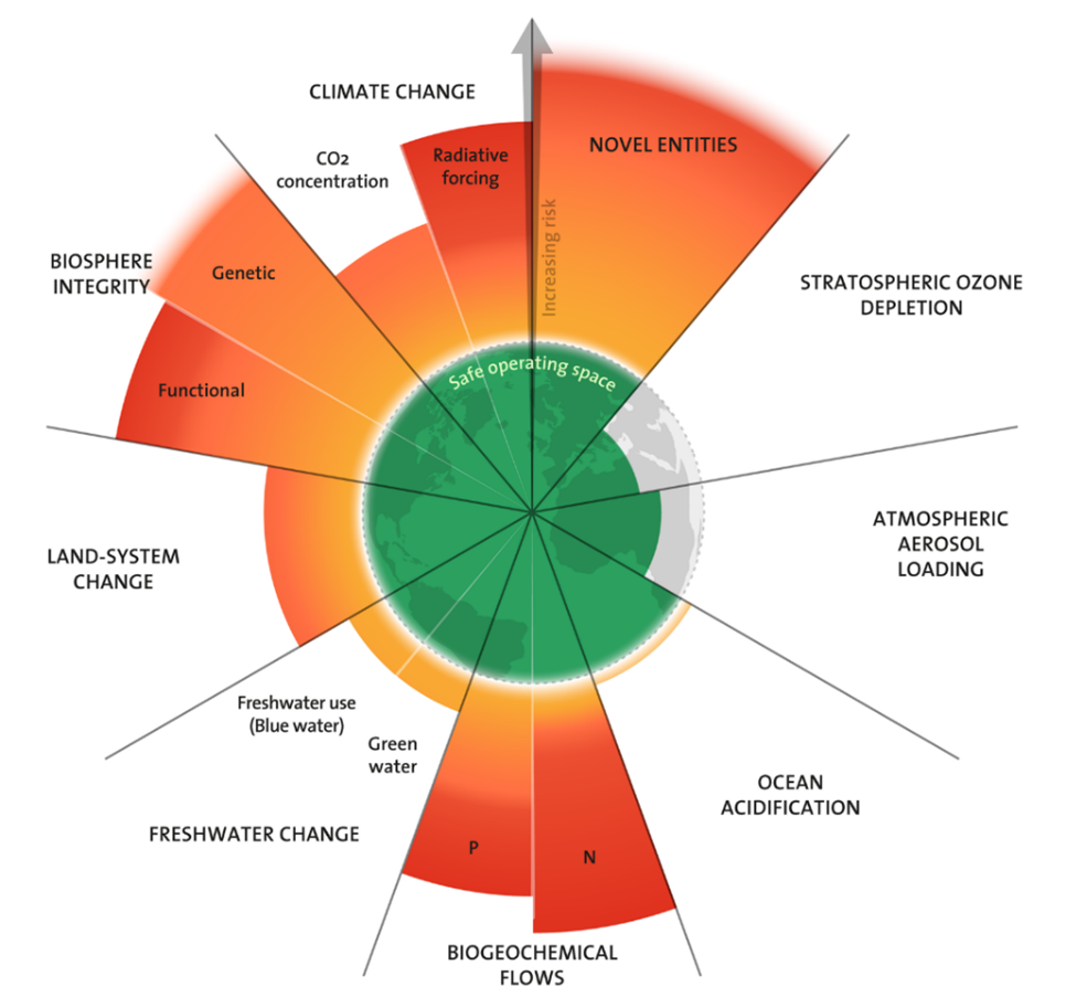 Steffen, W., Richardson, K., Rockström, J., Cornell, S. E., Fetzer, I., Bennett, E. M., Biggs, R., Carpenter, S. R., de Vries, W., de Wit, C. A., Folke, C., Gerten, D., Heinke, J., Mace, G. M., Persson, L. M., Ramanathan, V., Reyers, B., & Sörlin, S. (January 15th, 2015). Planetary boundaries: Guiding human development on a changing planet. Science, 347(6223), 1259855. Retrieved from : https://www.science.org/doi/10.1126/science.1259855